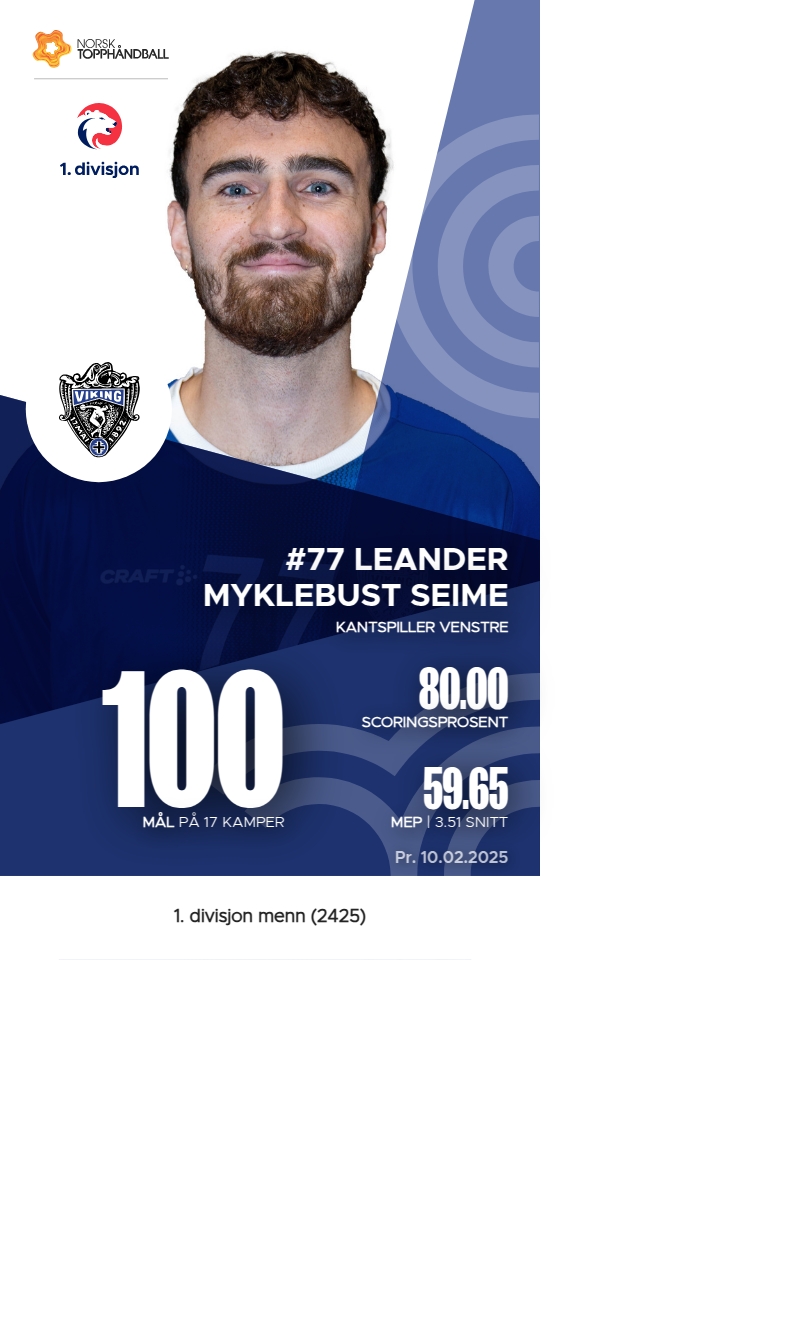 Viking TIF har flere sterke spillere som bidrar betydelig til lagets prestasjoner. Leander Myklebust Seime er en av de mest fremtredende, med imponerende 100 mål på 125 skudd, noe som gir ham en solid målprosent. Kjetil Åndal har også vært en viktig spiller, med 62 mål og hele 89 assists, noe som viser hans evne til å skape sjanser for lagkameratene. Miguel Pereira har scoret 58 mål og bidratt med 45 assists, noe som gjør ham til en nøkkelspiller i angrepet. Disse spillerne har vært avgjørende for Viking TIFs suksess i sesongen.